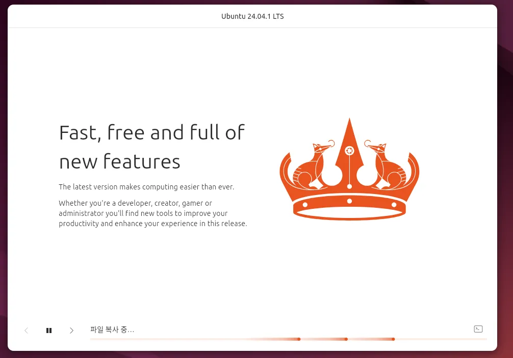 24년도 ubuntu 버전부터는 메모리를 4GB이상을 권장하는 것을 확인하고 4GB로 변경하니 정상적으로 설치할 수 있었습니다.
