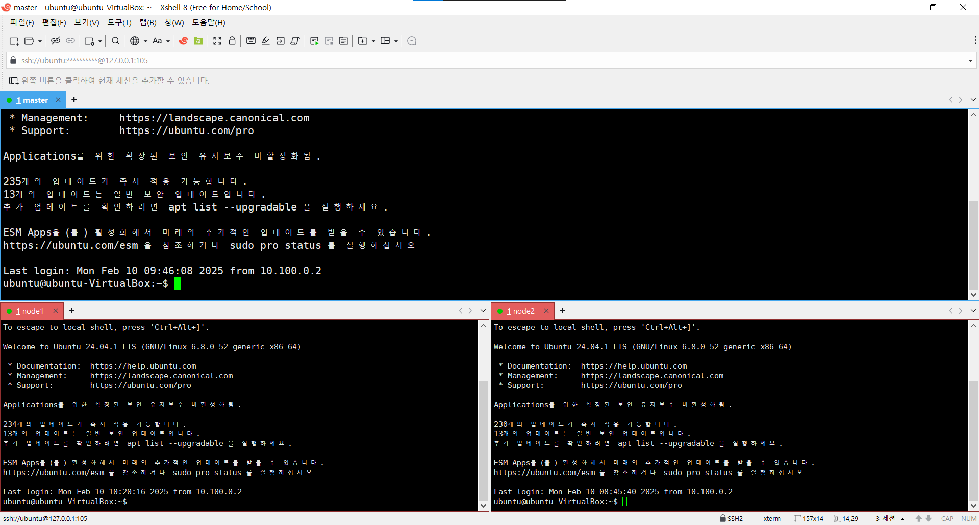 - 쿠버네티스 연습: 쿠버네티스 클러스터는 여러 노드(서버)가 서로 통신하며 구성되는데, 위와 같은 설정으로 각 VM을 클러스터의 노드처럼 구성할 수 있습니다.