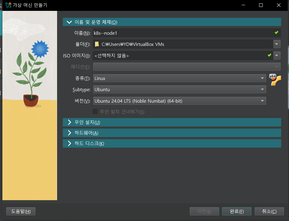 그 후 Oracle VitualBox에서 Ubuntu 가장 최신버전으로 VM을 만들어 줍니다.
